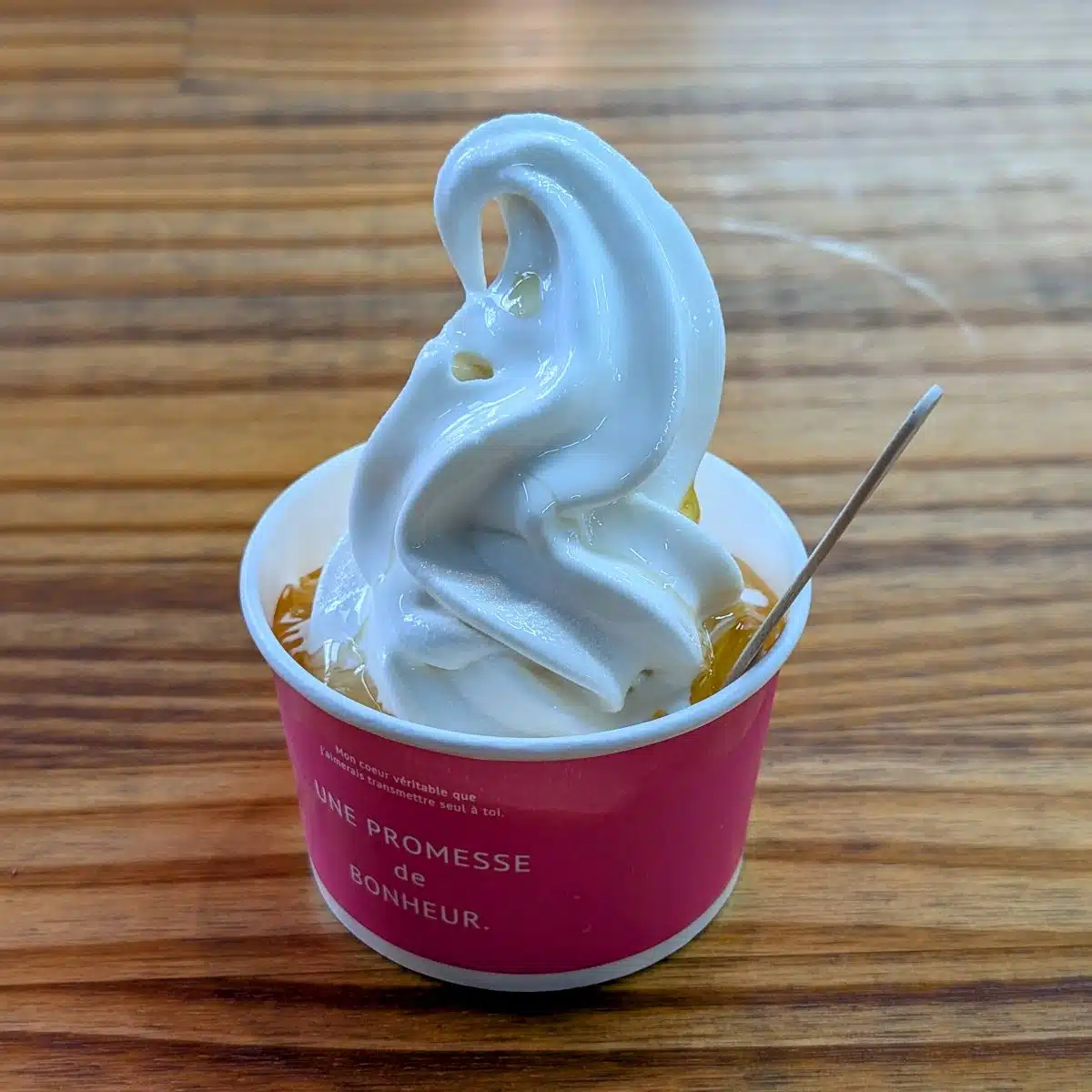 なめらかなソフトクリームに、やさしい香りと上品な甘さが特長の蜂蜜を練り込み、さらに仕上げにはたっぷりと“追いがけ”。2層仕立てで楽しむ、贅沢な味わいです。